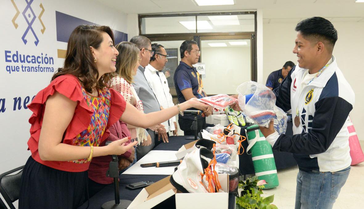Realizamos la entrega de equipamiento deportivo a ocho estudiantes atletas de alto rendimiento que obtuvieron medallas en la pasada edición de la Universiada Nacional 2025.